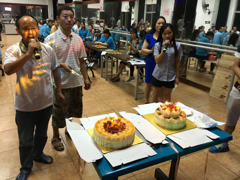 没有鲜花,却有掌声;没有美酒,却有祝福。公司于2016年6月29日晚在娱乐室,举行2016年度第二季度员工生日晚会。当晚151名寿星员齐聚娱乐室,参加由行政部组织的生日晚会。晚会上由挤压二厂主管吴勇和生产二部计划科科长彭康泰作为员工代表,发表感言他们都说:很感谢公司给予他们机会及平台,同时他们也对员工进行了心得传授及生日祝福,希望各员工能用在自己工作当中。员工们都表示赞同及感谢。员工代表发表完后,由行政部给寿星们唱生日歌,吹生日蜡烛及食生日蛋糕,最后还玩了个互动小游戏。一遍欢声笑语打破了凌静的夜晚。晚会尾声,公司为每一位寿星们送上了公司精心准备精美的生日礼物。本次参加活动的寿星们都表示很开心能参加公司组织的活动,也很感谢公司给予平台,让他们可以安心的发展,希望以后公司能多增举办同类型活动。