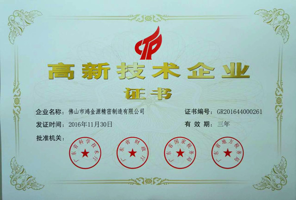 阳春三月,是暖阳高照、春风和煦、百花争艳、万木争荣的大好季节,鸿金源也喜迎佳音——根据国家《高新技术企业认定管理办法》和《高新技术企业认定管理工作指引》的相关规定,我公司被认定为“国家级高新技术企业”。今年的3月中旬,收到了由广东省技术厅、广东省财政厅、广东省国家税务局、广东省地方税务局联合颁发的“国家高新技术企业”认定证书,有效期三年,由此正式迈入国家高新技术企业行列。