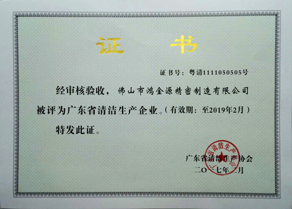 2016年6月,我公司在十二五规划中取得的“广东省清洁生产企证书”有效期已过。自2016年5月起,根据《中华人民共和国清洁生产促进法》和《广东省清洁生产审核及验收办法》的有关规定,以及持续清洁生产审核工作的相关要求,结合我公司清洁生产工作实际情况,我公司申办了持续清洁生产的续期证书,经过区、市和省级部门的层层审核已顺利通过,于2017年3月中取得了“广东省清洁生产企业的续期证书,有效期至2019年2月。