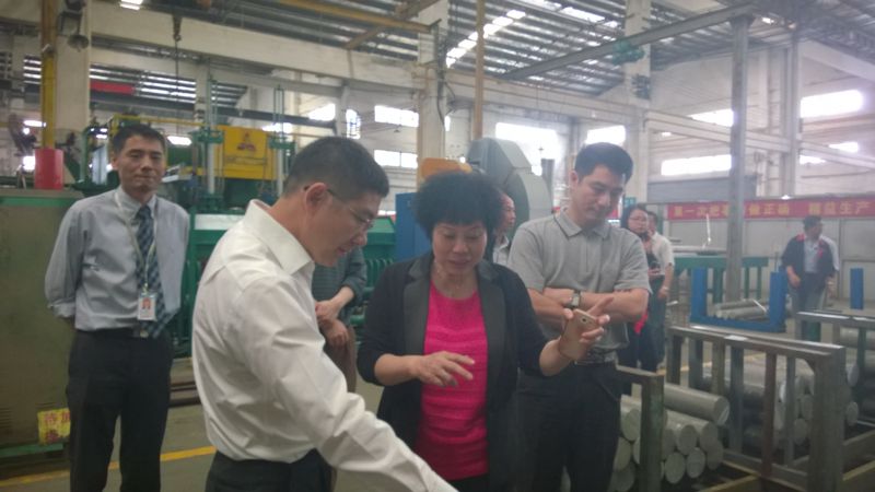 首先,谭董向宋局及各级领导介绍了我公司主打的几款产品:有轨道交通系列所用的特种铝材、太阳能源系列铝材、汽车输油管铝材及铝制成品等等,并重点汇报了公司自主研发的新产品、市场规划与发展前景。参观期间,考察团对我公司最具核心竞争力的高铁接触网特种铝材产生了浓厚的兴趣,为此,王副总专项且详细地讲解了此产品的核心技术及市场愿景,并一一解答了其他相关咨询。